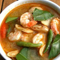 Tom Yum Kung is worldwide known for its hot and sour taste. It is one of the top 10 and the most tastety soups among Thai food. Tom Yum Kung is spicy, hot and sour with fresh ingredients of Thai fresh herbs. Though Tom Yum with shrimps (kung) are well-known, chicken is also an optional substitution.